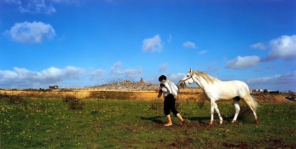 No âmbito do tema do projecto escolar deste ano, que é Arte, foram até à Gulbenkian, mais precisamente ao Centro de Arte Moderna, ver a exposição de fotografia de João Tabarra. Nesta exposição João Tabarra desenvolve uma investigação sobre o uso e o poder das imagens. E a esta hora estão vocês a pensar o que é que os miúdos de 3/5 anos fazem numa exposição destas... Também foi o meu primeiro pensamento. Até falar com a professora ontem. Parece que se tratou de uma visita guiada em que os pequenos tinham de recriar as imagens através de som e dança/movimento. Cada fotografia que viam tinham de interpretar, por exemplo a V. contou que tinham de puxar o cavalinho e depois batiam com as mãos nas pernas a imitar o galope. Ou tinham de levar a baleia até ao mar, ou imitar o lobo na floresta, e por aí fora.